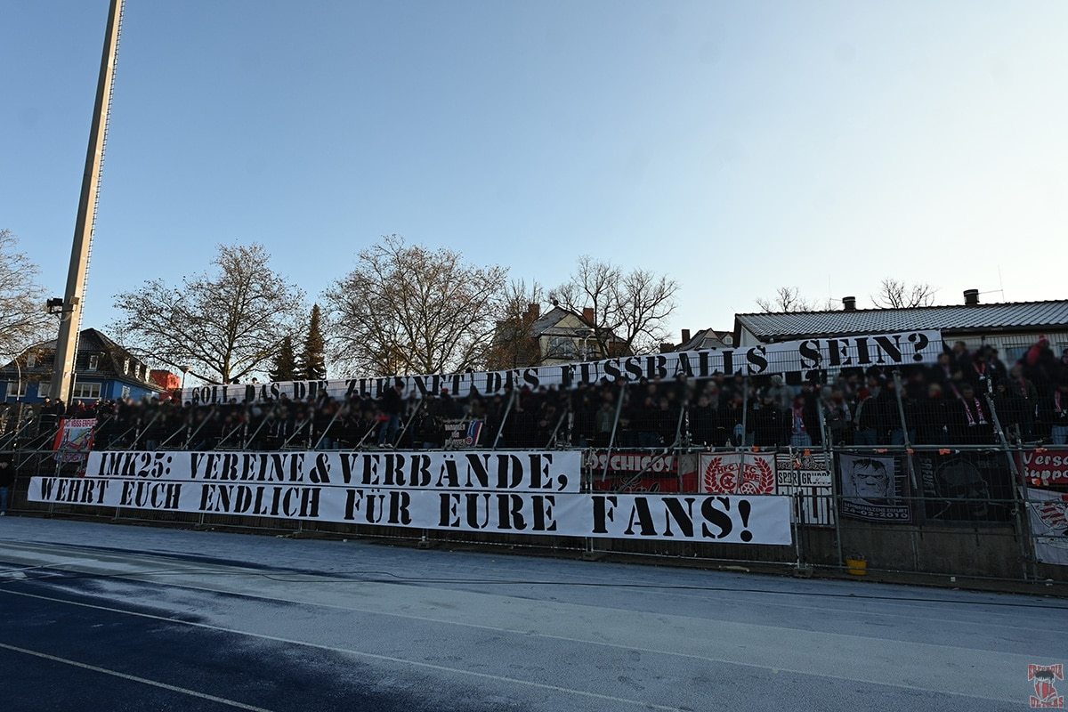 Wir fordern einen offenen und transparenten Diskurs aller Beteiligten – Verbände, Vereine, Fans. Sicherheit im Stadion darf nicht länger rein autoritär gedacht werden: Sie entsteht nicht gegen, sondern nur mit den Menschen, die Woche für Woche für Stimmung, Identifikation und Gemeinschaft sorgen.Die pauschale Ablehnung von Pyrotechnik und die Ignoranz gegenüber positiven, kreativen Entwicklungen der Fankultur verhindern authentischen Fortschritt. Die Verbände sind jetzt in der Pflicht: Statt Abschottung braucht es Gesprächsbereitschaft, Augenhöhe und Reformwillen.